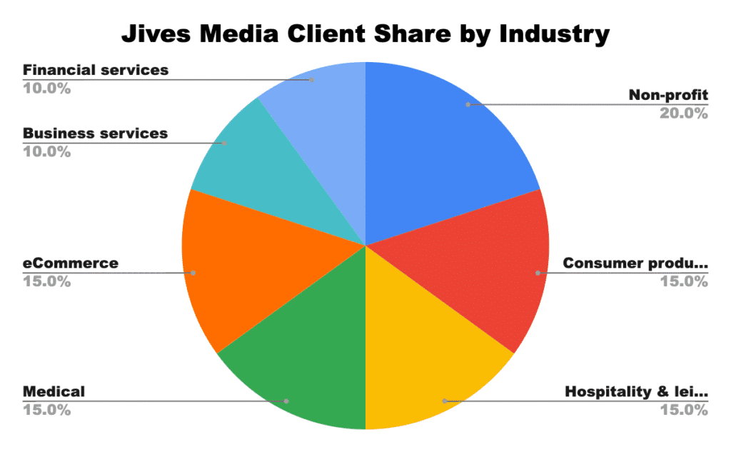 Jives Media | 5/5 | 15% | 35% | $100-$149 | 10-49 |